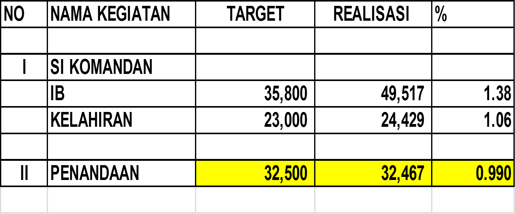 - Secara umum Program Kegiatan SIKOMANDAN , Pendataan dan Penandaan Ternak di lingkup Dinas Peternakan Kabupaten Jombang telah berjalan dengan baik .Hal ini dikarenakan adanya target kegiatan yang telah tercapai bahkan melampaui target dengan data sebagai berikut :